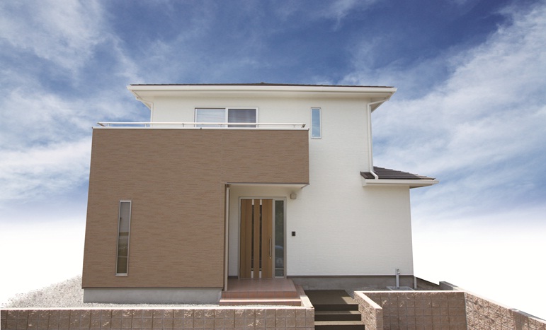 外観は白と茶の2色の外壁で、スッキリとしたデザイン。