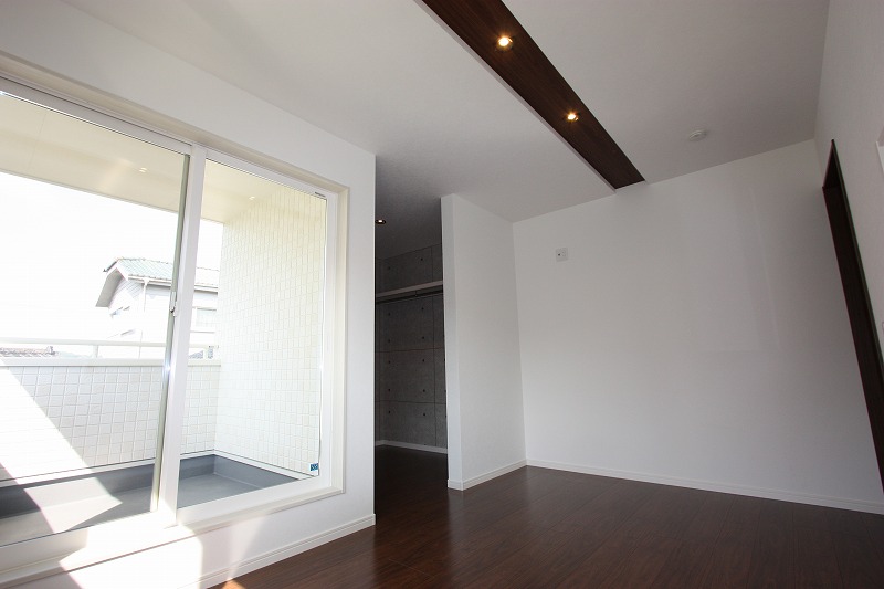 家に居ながらバイクを眺めたいという要望を叶える為、リビング・寝室からもガレージを眺められるよう工夫された間取りです。