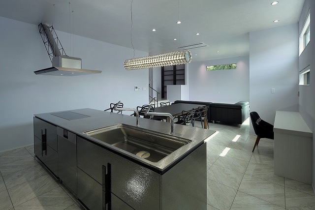 キッチンはTOYOkitchenを採用し、大空間のLDKにインテリアとしてかっこよく存在してくれています。