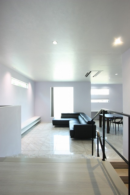 2階のLDKと居室・水廻りのプライべート空間とはスキップフロアで上がることで、