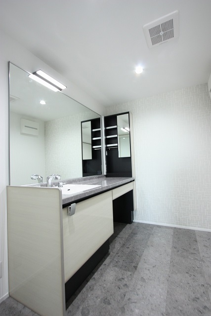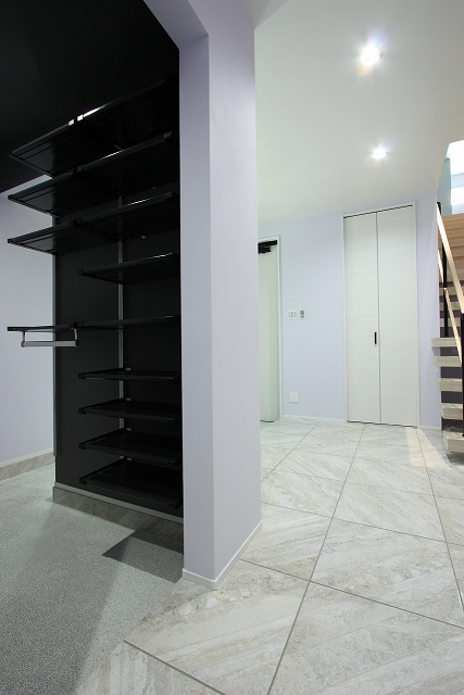 1階は親御さん。2階はご夫婦家族の2世帯住宅。近隣商業地域の土地を有効に使い、インナーガレージ2台分に収納もたっぷりとっています。