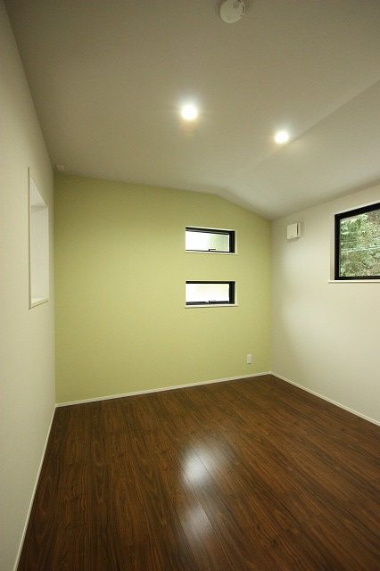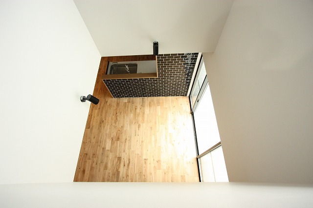 南側に木々があるため日当たりが気になるところ、コンパクトなお家ながら、吹き抜けを取り入れることで明るさも確保。