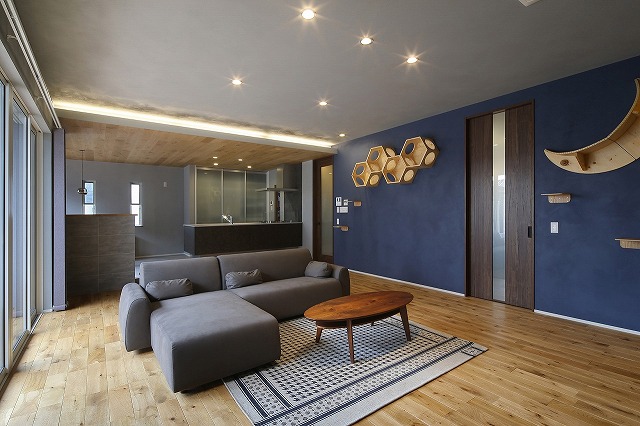 リビングにキャットウォークを設けたり、ペットの部屋を設けたりとペットがのびのびと暮らせるのはもちろん、将来のことを考えて階段を上らなくてすむ、平屋にすることで長く住み続けるを考えて設計した平屋の家づくり。