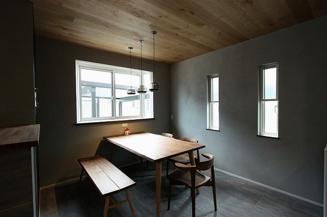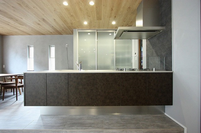 リビングの天井高を2.65mそして庭に面する窓を大きくし、リビングに面する扉をハイドアにすることで、リビングがより開放的な空間となり、自然と家族が集まるそんな空間に仕上げました。